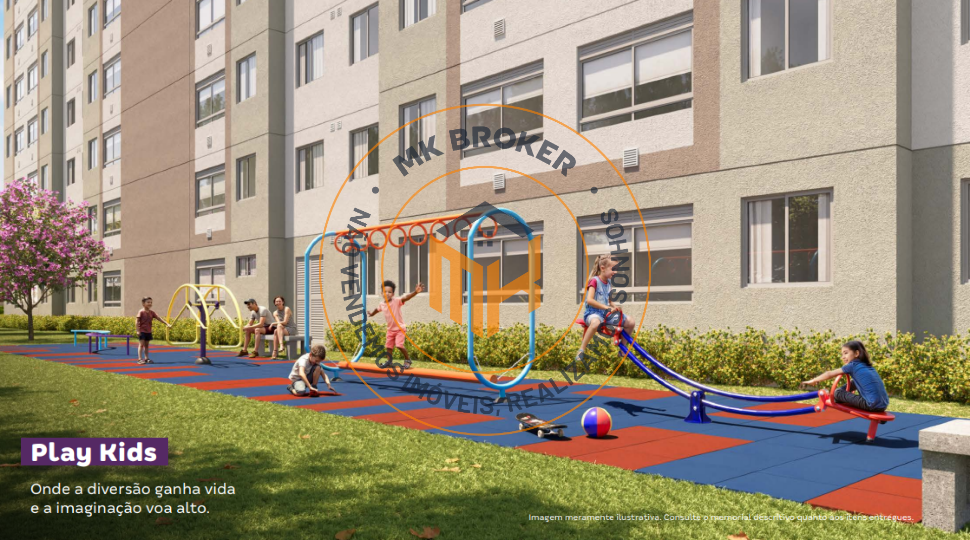Itens de Lazer: Churrasqueira Gourmet, Salão de Festas Gourmet, Espaço Office, Espaço Oficina, Play Kids, Play Baby, Play Pet, Praça de Jogos, Funcional Externo e Praça dos Sabores.
