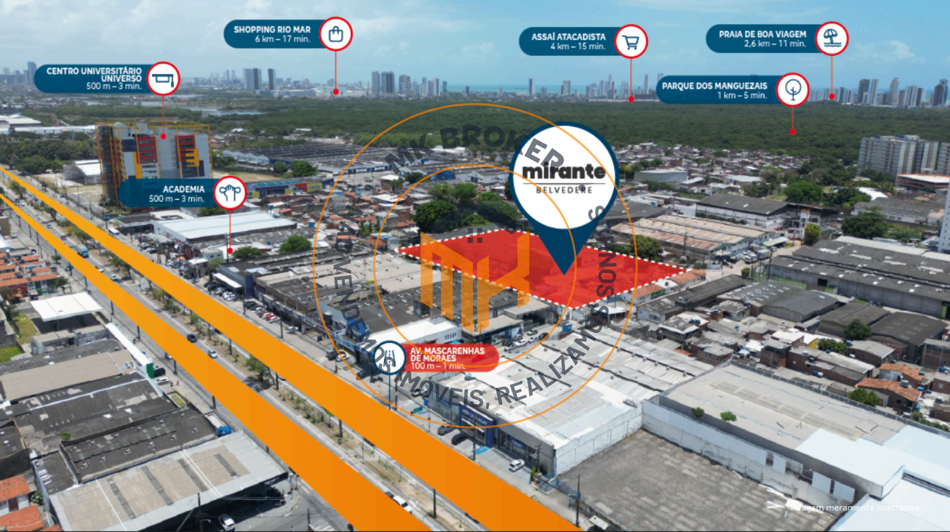 Educação e Comércio: Localizado a apenas 100m da Av. Mascarenhas de Moraes, a 500m do Centro Universitário UNIVERSON e próximo a grandes centros como o Shopping Recife (9 min) e RioMar (17 min).