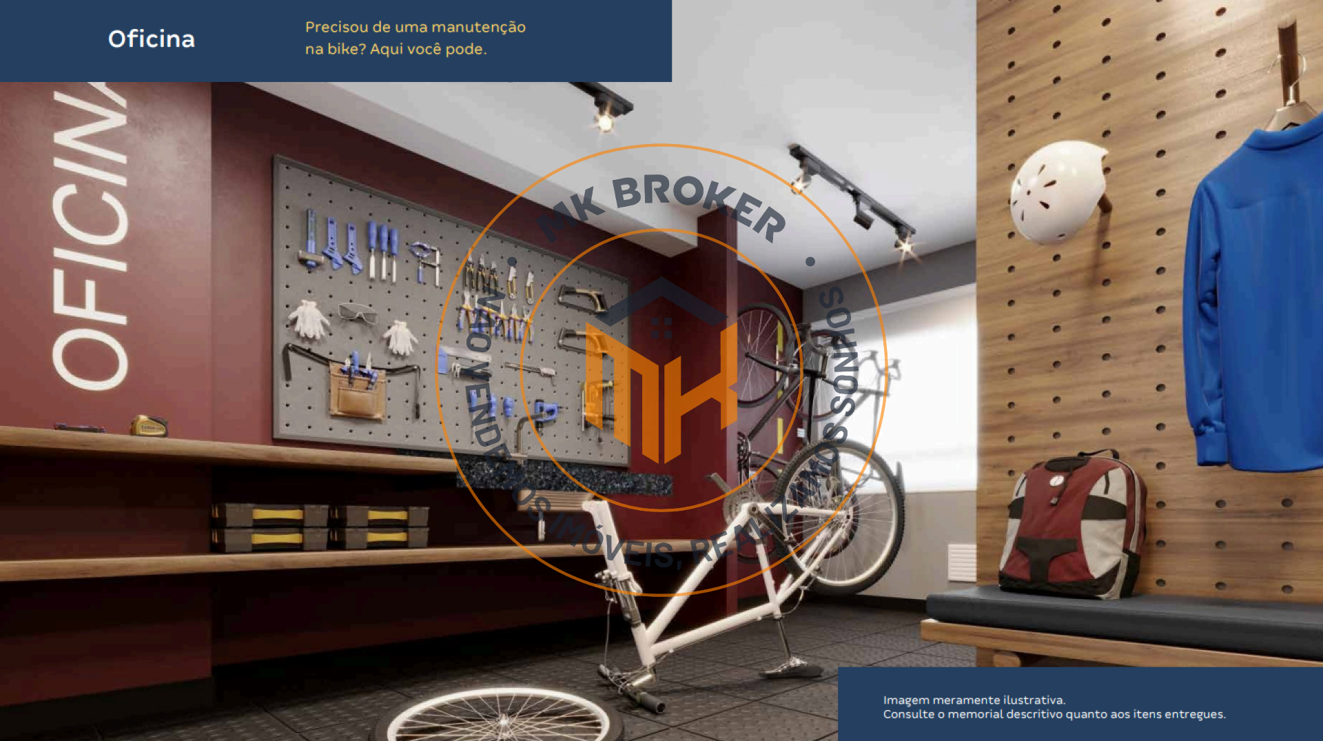 Vagas e Segurança: Estacionamento para carros, motos e 125 vagas para bicicletas distribuídas em 7 bicicletários. Portaria 24 horas com portão duplo para sua total segurança.