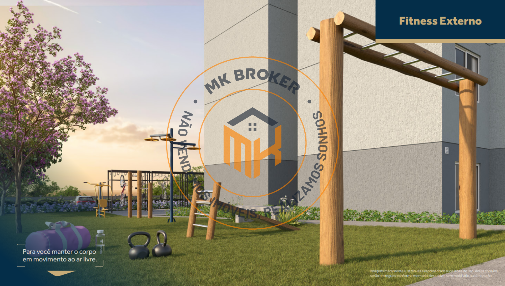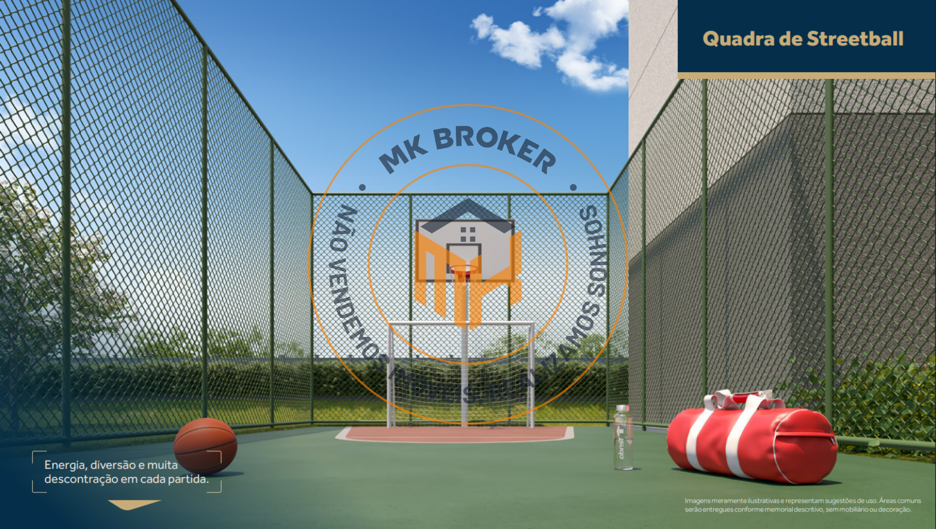 Esporte e Saúde: Quadra de streetball, fitness interno e fitness externo.