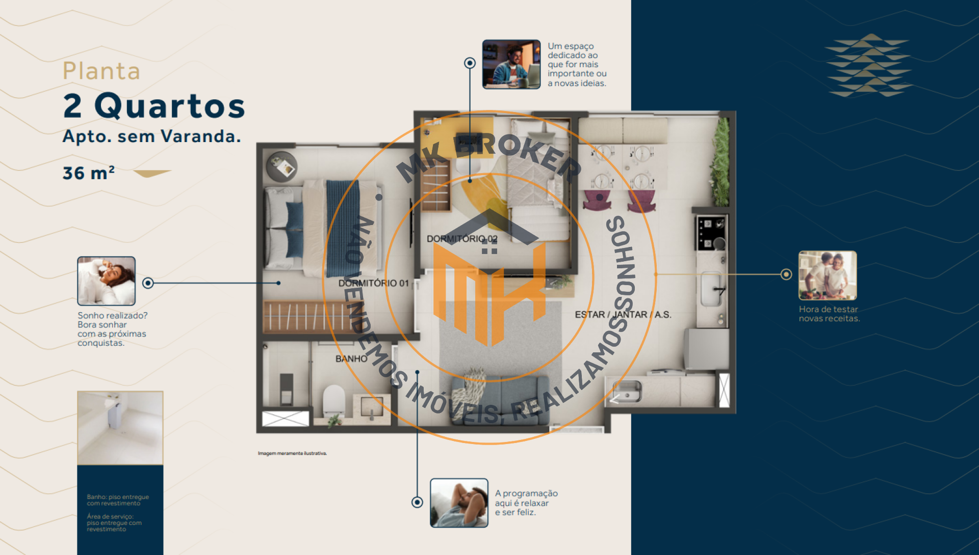 Metragem: Apartamentos inteligentes com área privativa de 36 m²;